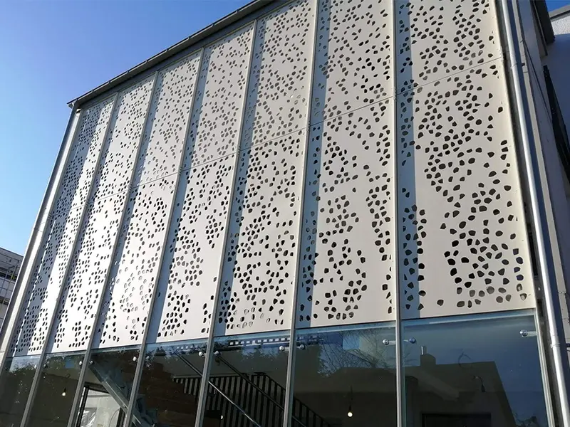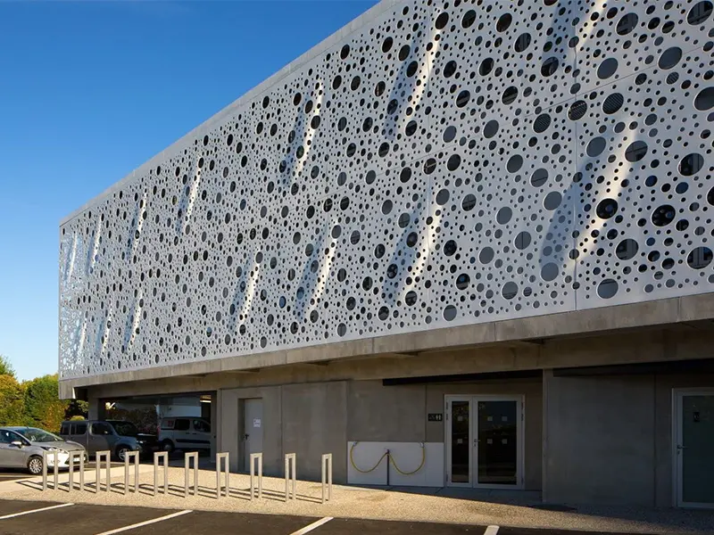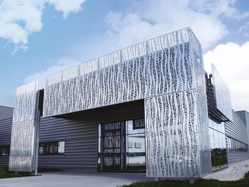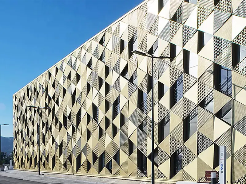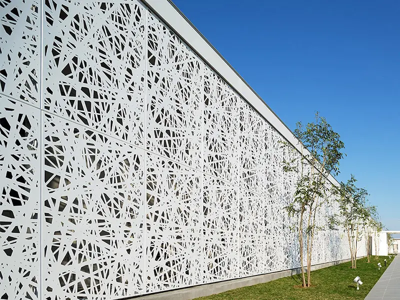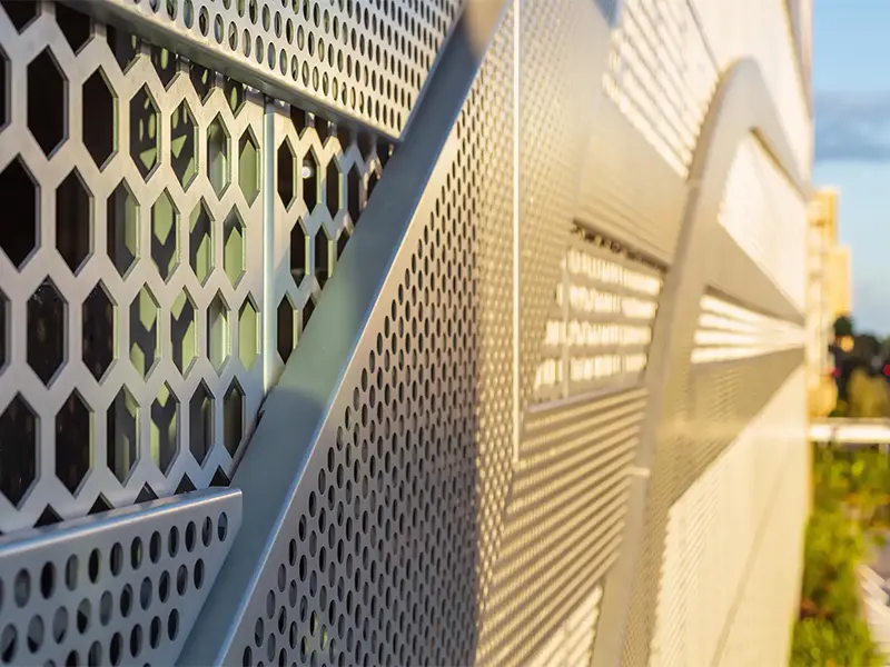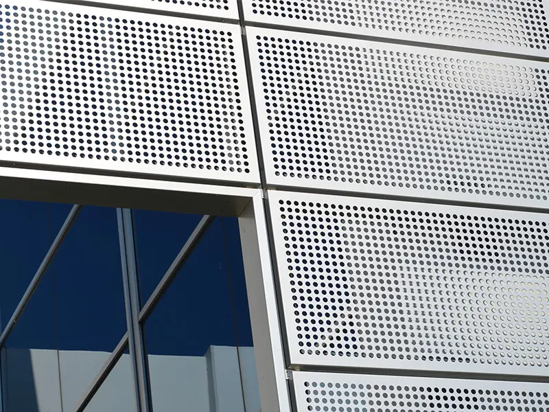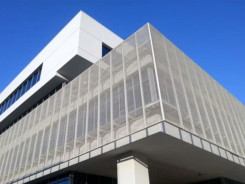Mimari Estetik ve Görsel Derinlik Bir binaya ilk bakışta algıyı belirleyen unsur, dış yüzeyin dili ve ritmidir. Alüminyum mesh kaplamalar, geleneksel düz yüzeylerin aksine yapıya üç boyutlu bir derinlik kazandırır. Gözenekli doku, güneş ışığının geliş açısına göre gün boyu değişen gölge oyunları üretir; bu da cephenin “yaşayan” bir karaktere bürünmesini sağlar. Mesh formu, metalin sert algısını yumuşatır; daha zarif, daha çağdaş bir cephe imzası oluşturur. Desen ve açıklık oranı doğru kurgulandığında, cephe hem uzaktan güçlü bir bütünlük sunar hem de yakından bakıldığında premium işçilik hissi verir. Bu nedenle mesh kaplama, tasarım özgürlüğü sağlayan esnek bir araç olarak mimarların sık tercih ettiği çözümler arasında yer alır. Tasarım Notu En iyi sonuç için desen seçimi; kat aksları, cephe modülleri ve birleşim çizgileriyle birlikte planlanmalıdır. Böylece derzler “göze batmadan” yüzey tek parça ve düzenli görünür.