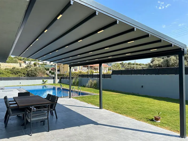 Otomatik alüminyum pergola; teras, bahçe, veranda, villa dış alanı, kafe, restoran, otel ve sosyal tesis gibi açık alanlarda kullanılabilir. Hem konutlarda hem ticari alanlarda daha konforlu ve daha kontrollü dış mekân kullanımı sağlamak için tercih edilir.